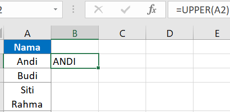 UPPER digunakan untuk mengubah semua huruf menjadi kapital.