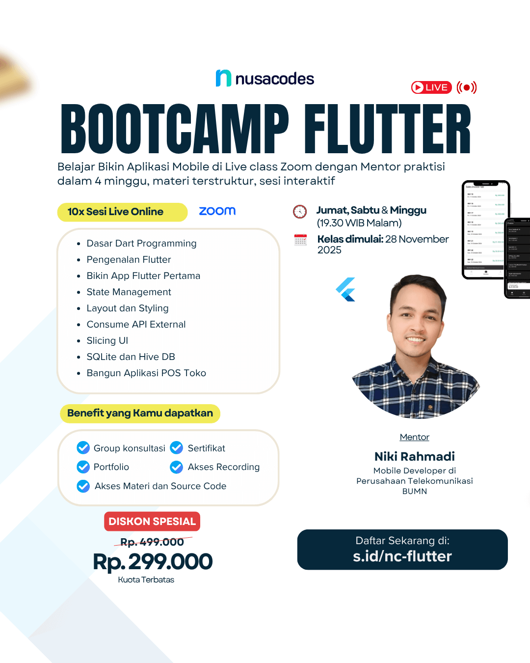 Memahami konsep dasar Flutter dan bahasa pemrograman Dart |